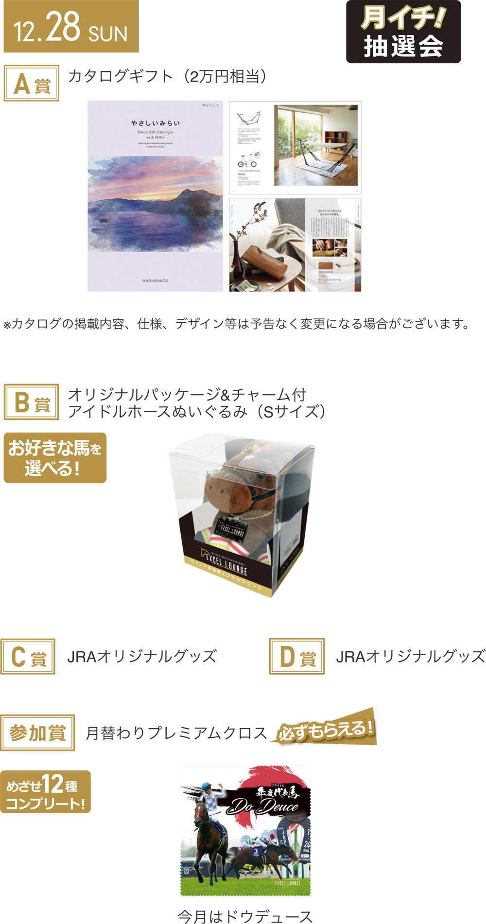 2,000円以上の馬券・UMACAご利用明細・UMACAスマート履歴(合算可)とエクセルラウンジご入場時のQRをご提示ください。