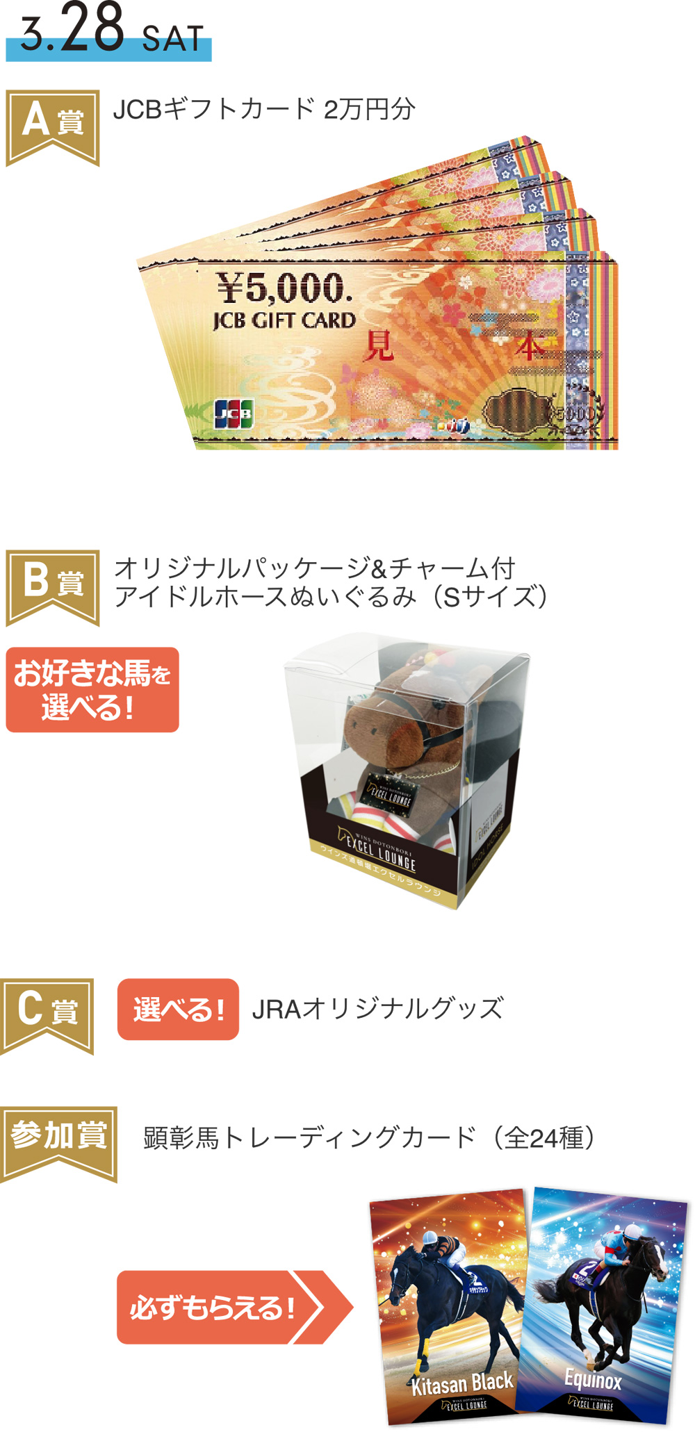 軽食プレゼント時にお渡しした抽選会参加券と2,000円以上の馬券・UMACAご利用明細・UMACAスマート履歴(合算可)をご提示ください。