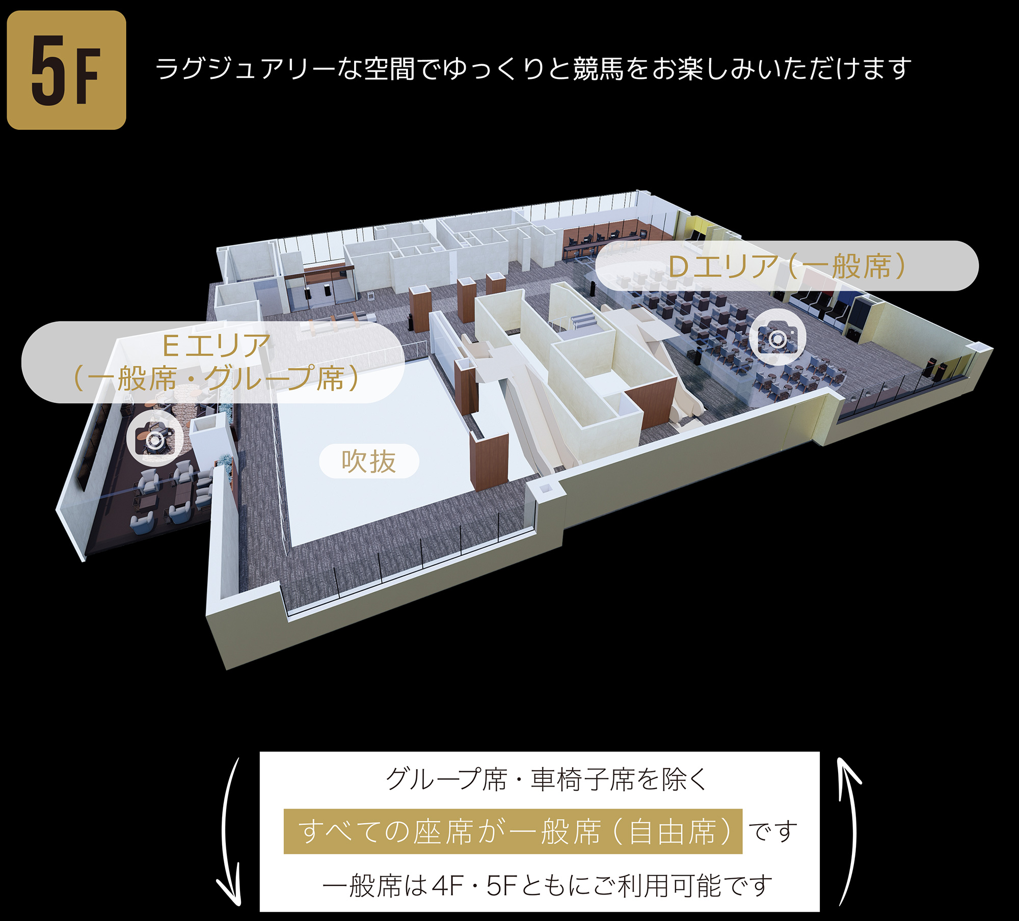 一般フロア(B1F~3F)同様にご利用可能です。詳しくはJRAホームページをご確認ください。