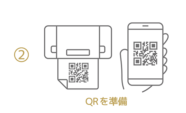 スマートフォンでQRを表示または印刷して持参