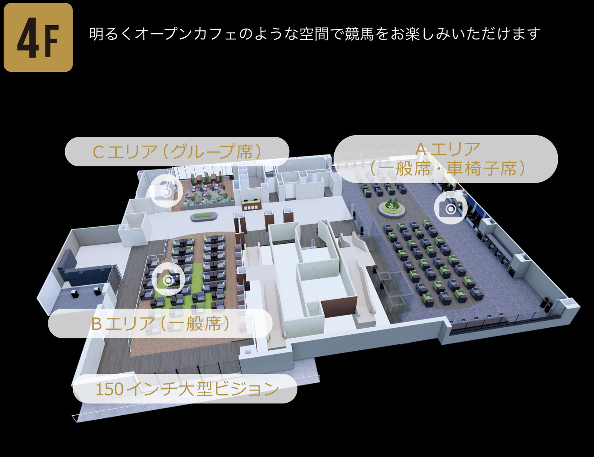- ※ 一部の座席はレース映像の見えづらい場所がございます